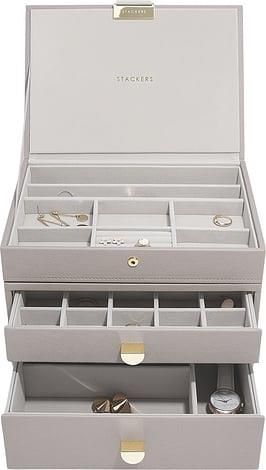 Szkatułka na biżuterię Stackers Classic potrójna taupe z 2 szufladami Żyrardów
