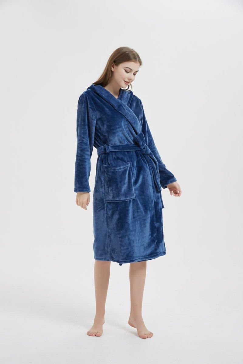 Szlafrok z kapturem Carlo 2XL/3XL granatowy z mikrofibry Żyrardów