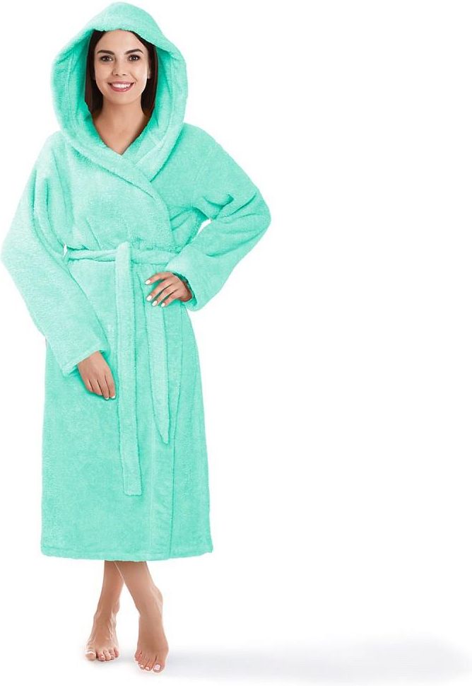 Szlafrok z kapturem frotte Robin XS miętowy bawełniany hotelowy 450g/m2 Żyrardów