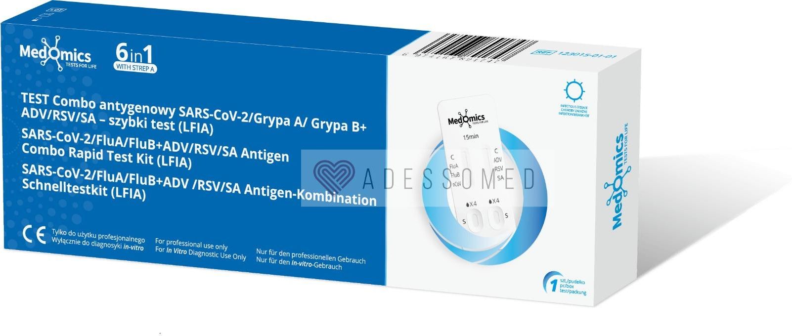 Test combo 6w1 Medomics STREP A/Grypa A/B/RSV/ADENOVIRUS/ COVID-19 - test profesjonalny Żyrardów