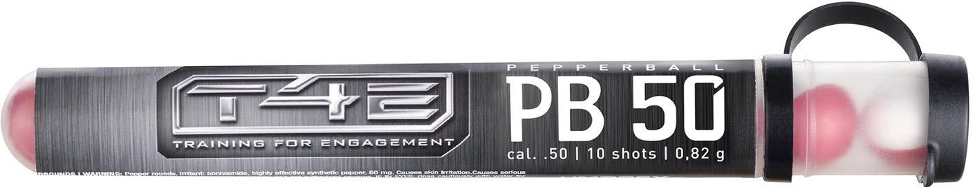 KULE RAM UMAREX PIEPRZOWE T4E PB 50 10SZT KAL.50 (2.4784) to idealnie okrągłe, zgrzewane kule wypełnione specjalnym proszkiem obezwładniającym. Ich zadanie to po wystrzeleniu dotrzeć do celu i po jego trafieniu rozbić się. Napastnik nie ma uszkodzeń ciała bo są na tyle miękkie tylko czuje uderzenie, a wokół niego powstaje proszkowa chmura, która działa drażniąco na układ oddechowy - tak samo jak w przypadku gazu pieprzowego. Kule mają kal.50 cal i do takiej broni są przeznaczone. Przenoszenie oraz ładowanie kul jest całkowicie bezpieczne. Nie trzeba obawiać się żadnych reakcji nawet przy upuszczeniu kuli na twarde podłoże. Otoczka pęka dopiero przy strzale. Kule pasują do: Rewolwer RAM Combat HDR50