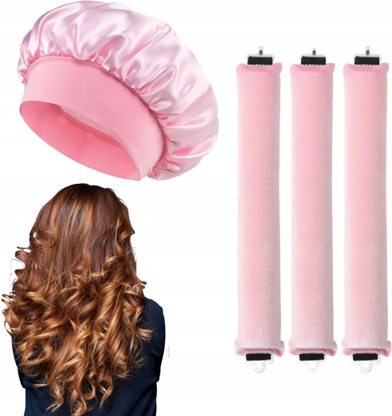 Wałki Blowout Papiloty Do Kręcenia Włosów 3 Sztuki + Czepek Satynowy Różowy Żyrardów