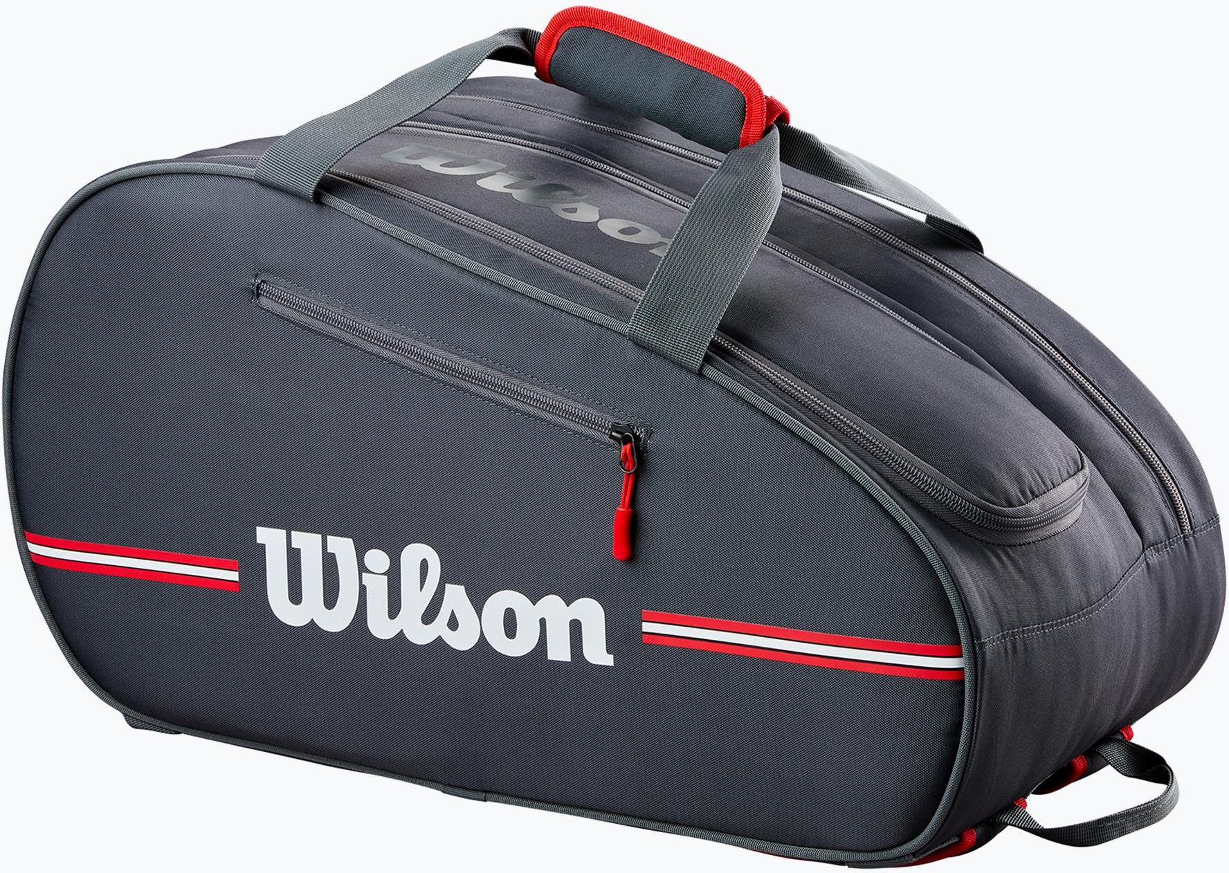Torba do padla Wilson Team Padel Bag czarna Torba do padla Wilson Padel Team to kompaktowy, a jednocześnie pojemny model stworzony z myślą o codziennych treningach i meczach. Dzięki przemyślanemu układowi przegródek oraz solidnym materiałom, zapewnia komfort noszenia i świetną organizację sprzętu. Specyfikacja i cechy: Wymiary: 56 × 32 × 28 cm – idealna do przenoszenia do 4 rakiet do padla, a także odzieży i obuwia. Przestronne komory – zapewniają odpowiednią segregację sprzętu. Wytrzymała tkanina – odporna na codzienne użytkowanie. Wyściełane uchwyty i regulowane szelki – gwarantują komfort noszenia w ręce lub na plecach. Torba do padla Wilson Padel Team to praktyczny wybór dla graczy, którzy cenią trwałość, prostotę i solidne wykonanie – wszystko w klasycznym, sportowym stylu marki Wilson.