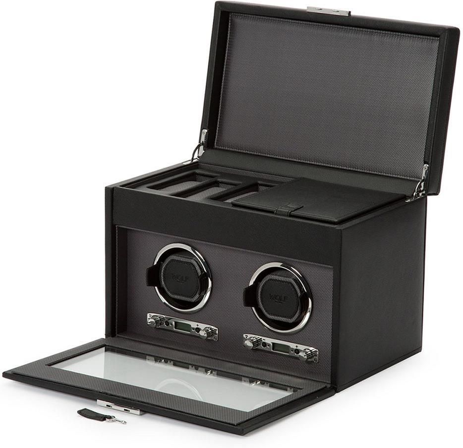 Wolf Viceroy 456202 to rotomat wykonany z czarnej skóry z miejscem na dwa zegarki. Posiada programy