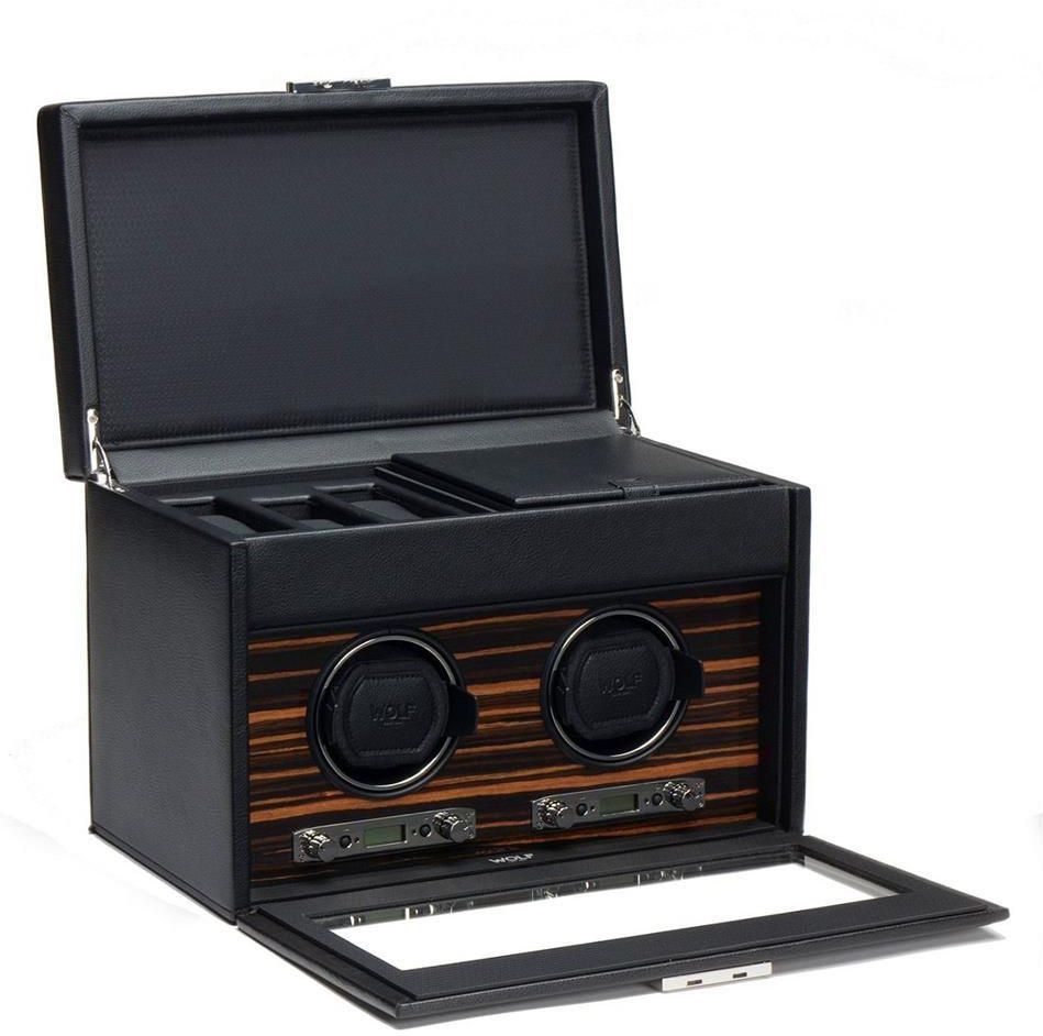 Wolf Roadster 457256 to rotomat wykonany z czarnej skóry i polerowanego drewna z miejscem na dwa zeg