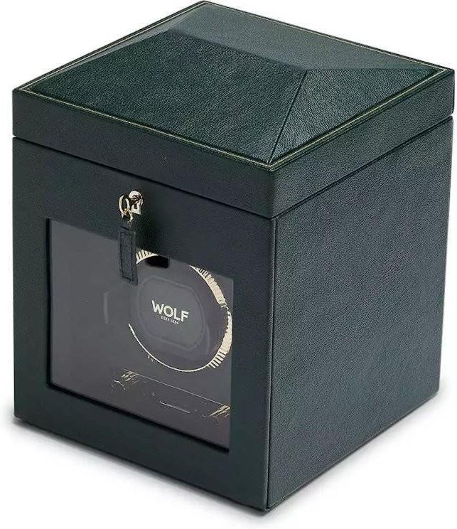 Wolf British Racing 792141 to rotomat z miejscem na jeden zegarek, z dwuczęściowym schowkiem z podus