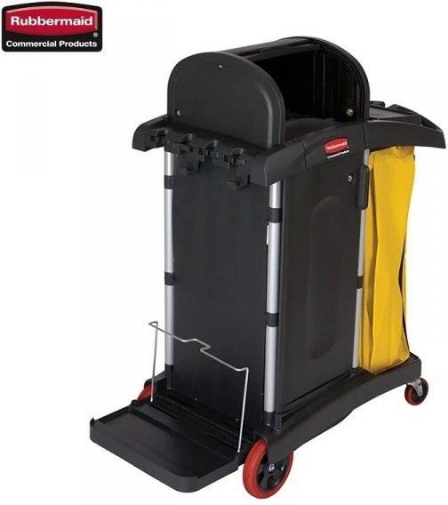 Rubbermaid HYGEN™Wózki do czyszczenia z zabezpieczeniamiBezpieczny system do czyszczenia w placówkach służby zdrowia.Zaprojektowany do użycia z wszystkimi produktami Rubbermaid HYGEN™ do mikrofibry.Zamykane drzwiczki szafki, zamykana pokrywa zabezpieczająca i pokrywa na odpadki.Gumowe uchwyty na przybory z przodu i z tyłu.Zawiera 2 ciche kółka i 2 normalne kółka.Zawiera dwa zdejmowane nosidła do dezynfekcji o pojemności 9l (FG9T8200).Nierdzewiejące i łatwe w czyszczeniu aluminium oraz konstrukcja plastikowa.Komfortowy uchwyt wózka ulepsza manewrowanie i wyposażony jest w stelaż na szufelki /odkurzacz.Haczyki umożliwiają przymocowanie czterech znaków ostrzegawczych.Mieści 2 wiadra do dezynfekcji (FGQ95088).Wymiary: 122,5 x 55,9 x 135,9 cm...