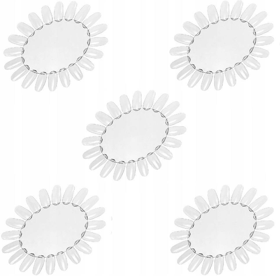 Wzornik do lakierów ekspozytor przezroczysty słoneczko 20 tipsów zestaw 5 sztuk Wzornik do paznokci w kształcie słoneczka jest idealny do prezentacji lakierów klasycznych, hybrydowych, żeli oraz różnorodnych zdobień. Ekspozytor zawiera 20 tipsów, umożliwiając wygodne porównanie różnych kolorów bez konieczności otwierania produktu. Solidnie wykonany i poręczny, doskonale sprawdzi się w salonie kosmetycznym oraz w domowym zaciszu. Dodatkowo wzornik stanowi świetne narzędzie do nauki malowania zdobień, umożliwiając eksperymentowanie z różnymi technikami i doskonalenie umiejętności przed przystąpieniem do malowania prawdziwych paznokci. W zestawie znajduje się 5 przezroczystych wzorników w kształcie słoneczka.