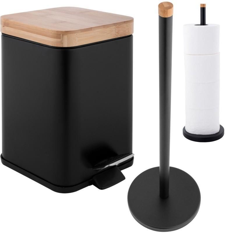 Zestaw Yoka: Kosz na śmieci Stojak na papier toaletowy czarny bambus Żyrardów