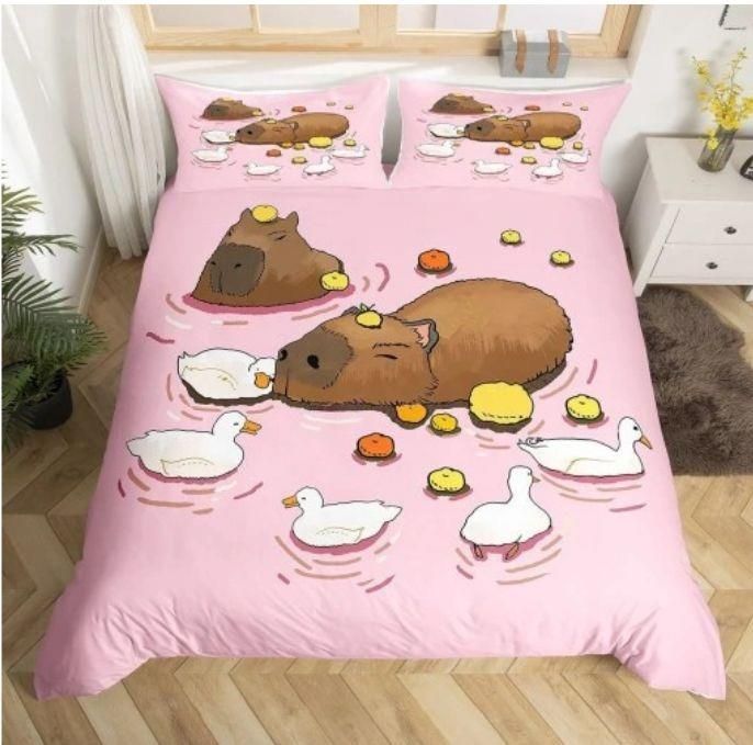Zestaw3-częściowy poszewek na kołdrę z wzorem Kapibara z kreskówek160*200CM Żyrardów
