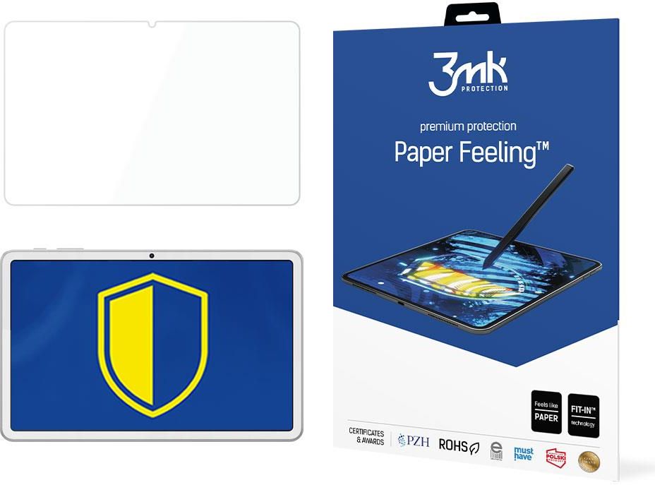 3mk Paper Feeling™ - 2 sztuki Rysuj, pisz i chroń swoje urządzenie dopasowana do modelu Eagle 1073, w dotyku jak papier, idealna do rysików, wzmacnia ekran o 200%, skuteczna i wytrzymała ochrona, tylko 0,18 mm grubości, zawsze czysty ekran bez odcisków palców, powłoka odbijająca światło, bezpieczna - atest PZH, certyfikat RoHS, wyprodukowana w Polsce. Redukcja odcisków palców Jesteś grafikiem lub projektantem i w swojej codziennej pracy dbasz o każdy, nawet najdrobniejszy szczegół? Projekty dopieszczasz z najwyższą starannością, aż tu nagle na ekranie pojawia się nieestetyczna, tłusta plama. Zapomnij! Paper Feeling™ to folia, która jest łatwa w utrzymaniu czystości i zapobiega tworzeniu się plam na ekranie. Powłoka odbijająca światło Jeśli na co dzień dużo korzystasz z tabletu i jest to narzędzie Twojej pracy, to z pewnością docenisz wygodę użytkowania folii Paper Feeling™. Nie tylko ochronisz swój tablet i zadbasz o jego bezpieczeństwo, ale dzięki powłoce, która odbija światło, poczujesz niezwykły komfort pracy i przeniesiesz się na zupełnie inny poziom jakości użytkowania Twojego urządzenia. Przyjemna jak papier Rysik sunie po ekranie, ale Ty masz wrażenie, że piszesz po kartce papieru. Naprawdę rewelacyjne uczucie. Dzięki folii ochronnej Paper Feeling™ możesz podążać z duchem czasu bez konieczności porzucania tego, co lubisz – kojącego dla zmysłów uczucia pisania po papierze. Paper Feeling™ to nostalgiczny powrót do przeszłości pod postacią nowoczesnej folii ochronnej o strukturze papieru. Wszystko po to, aby pisanie i rysowanie na ekranie było czystą przyjemnością. Skuteczna i wytrzymała ochrona Piszesz, rysujesz, chwila nieuwagi i Twoje kosztowne urządzenie ląduje na chodniku czy podłodze. Ucisk w żołądku i ta myśl – czy ekran jest cały? Dobrze to znamy. Dlatego zadbaliśmy, aby folia ochronna Paper Feeling™ imitowała nie tylko papier, ale także pancerną szybę. Ta wyjątkowa folia wzmacnia ekran do 200%, skutecznie chroniąc ekran tabletu lub smartfona przed zarysowaniem i rozbiciem. I zawsze czysta Nikt chyba nie lubi pisać na brudnych, zaplamionych kartkach papieru? Folię ochronną Paper Feeling™ wystarczy przetrzeć, aby cieszyć się idealnie czystym wyświetlaczem. Piszesz i rysujesz na ekranie o unikalnej strukturze papieru, bez śladów palców i zabrudzeń! Czego chcieć więcej? Posiada atest PZH Eksperyment badawczy dscout pokazał, że przeciętny użytkownik trzyma telefon w dłoni niemal 2,5 godziny dziennie. Paper Feeling™ posiada atest Państwowego Zakładu Higieny, co gwarantuje, że jest wolny od substancji szkodliwych i bezpieczny dla zdrowia – niezależnie od tego, ile czasu z telefonem spędzasz. Produkt zgodny z dyrektywą RoHS Zabezpieczając telefony, mamy na uwadze troskę o planetę. Paper Feeling™ przeszedł pozytywnie certyfikację RoHS w niezależnym laboratorium – oznacza to, że jest przyjazny środowisku i mieści się w ścisłych unijnych dyrektywach dotyczących zawartości metali ciężkich i niebezpiecznych substancji (m.in. ołowiu, rtęci czy kadmu). PRODUKT POLSKI – KUPUJ ŚWIADOMIE Podczas codziennych zakupów kierujmy się patriotyzmem konsumenckim. Wybierajmy świadomie polskie produkty. W ten sposób przyczynimy się do uratowania miejsc pracy. Polski produkt w Twoim koszyku to zysk dla rodzimych firm i wsparcie lokalnych budżetów. Kupuj świadomie - Wybieraj PRODUKT POLSKI. Zestaw zawiera 2 szt. Paper Feeling™ (przód), raszelka, CleaningSet, opakowanie. W naszej ofercie na Allegro możesz kupić również inne produkty 3mk szkła hartowane (3mk HardGlass, 3mk HardGlass Max Lite), wzmocnione szkła hartowane (3mk HardGlass Max), prywatyzujące szkła hartowane (3mk HardGlass Max Privacy), szkła kompozytowe najtrwalsze na rynku (3mk NeoGlass), szkła hybrydowe o niepękającej strukturze (3mk FlexibleGlass, 3mk FlexibleGlass Lite, 3mk FlexibleGlass Max, 3mk FlexibleGlass Edge), antyuderzeniowe folie ochronne (3mk SilverProtection+, 3mk ARC+), antymikrobowe folie ochronne (3mk SilverProtection+), przeźroczyste etui na telefon (3mk Clear Case), pancerne etui na telefon amortyzujące uderzenia (3mk Armor Case), personalizowane etui na telefon z własnym zdjęciem (3mk Armor Case i 3mk Satin Armor Case z własnym zdjęciem), etui na telefon z nadrukiem 3D, dostępne ponad 50 wzorów (Ferya by 3mk), matowe etui w pięknych kolorach (3mk Matt Case), etui na telefon z satynową ramką poprawiającą chwyt (3mk Satin Armor Case), szkła na obiektyw aparatu (3mk Lens Protection), szkła ochronne na ekran tabletu (3mk FlexibleGlass, 3mk FlexibleGlass Lite), szkła ochronne na ekran nawigacji i kamer (3mk FlexibleGlass, 3mk Cam Protection), folie i szkła na smartwatche (3mk Watch Protection), filtry prywatyzujące na MacBooki (3mk PRIVACY), pierścienie ochronne na obiektyw aparatu (3mk Camera Protective Ring), zaślepki prywatyzujące (3mk Privacy Slider), zestawy czyszczące (3mk Care Set, 3mk Care Wipe).