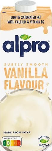 Alpro Sojowe Waniliowe 1l Klasyka smaku w roślinnej odsłonie! Poznaj Napój Sojowy Alpro o smaku waniliowym – absolutny klasyk wśród napojów roślinnych. W 100% roślinny, ten pyszny napój jest naturalnie bez laktozy i glutenu. To świetne źródło witamin B2, B12 oraz D, a także zawiera wysokiej jakości białko roślinne. Alpro dba o środowisko, produkując ten napój wyłącznie z soi wolnej od modyfikacji genetycznych. Alpro Sojowe Waniliowe to idealna, słodka alternatywa dla mleka. Dodaj go do swoich płatków, przygotuj ulubiony koktajl lub po prostu ciesz się chwilą słodyczy o każdej porze dnia! Najważniejsze zalety Alpro Sojowe Waniliowe Pyszny waniliowy smak. Bogaty w białko roślinne. Źródło wapnia i witamin B2, B12 i D.100% roślinny. Naturalnie bez laktozy i glutenu. Soja wolna od modyfikacji genetycznych. Skład Baza sojowa (woda, obłuszczone ziarno soi (7,8%)), cukier, wapń, aromaty, sól morska, regulator kwasowości (fosforany potasu), ekstrakt marchwiowy, stabilizator (guma gellan), witaminy (B2, B12, D2). Przechowywanie: Przechowywać w temperaturze od +1°C do +25°C. Po otwarciu przechowywać w lodówce w temperaturze do +7°C, nie dłużej niż 5 dni. Wartości odżywcze (na 100 ml) Energia: 240 kJ / 57 kcal Tłuszcz: 1,8 g (w tym kwasy nasycone: 0,3 g) Węglowodany: 6,8 g (w tym cukry: 6,8 g) Błonnik: 0,5 g Białko: 3,0 g Sól: 0,14 g Witamina D: 0,75 µg (15% RWS*) Witamina B2 (ryboflawina): 0,21 mg (15% RWS*) Witamina B12: 0,38 µg (15% RWS*) Wapń: 120 mg (15% RWS*) *RWS - Referencyjna Wartość Spożycia