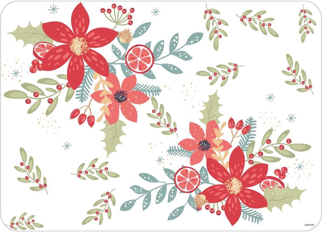 Podkładka na stół prostokątnaPiękny motyw świąteczny. Biała z delikatnym wzorem ostrokrzewu i gwiazdy betlejemskiej. Doskonała ochrona stołu jak również może być wykorzystana jako ciekawa ozdoba. Została wykonana z tworzywa sztucznego. Jest prosta w utrzymaniu czystości, wystarczy przetrzeć szmatką. Motyw świątecznyLaminowana - łatwa w utrzymaniu czystościWykonana z tworzywa sztucznego