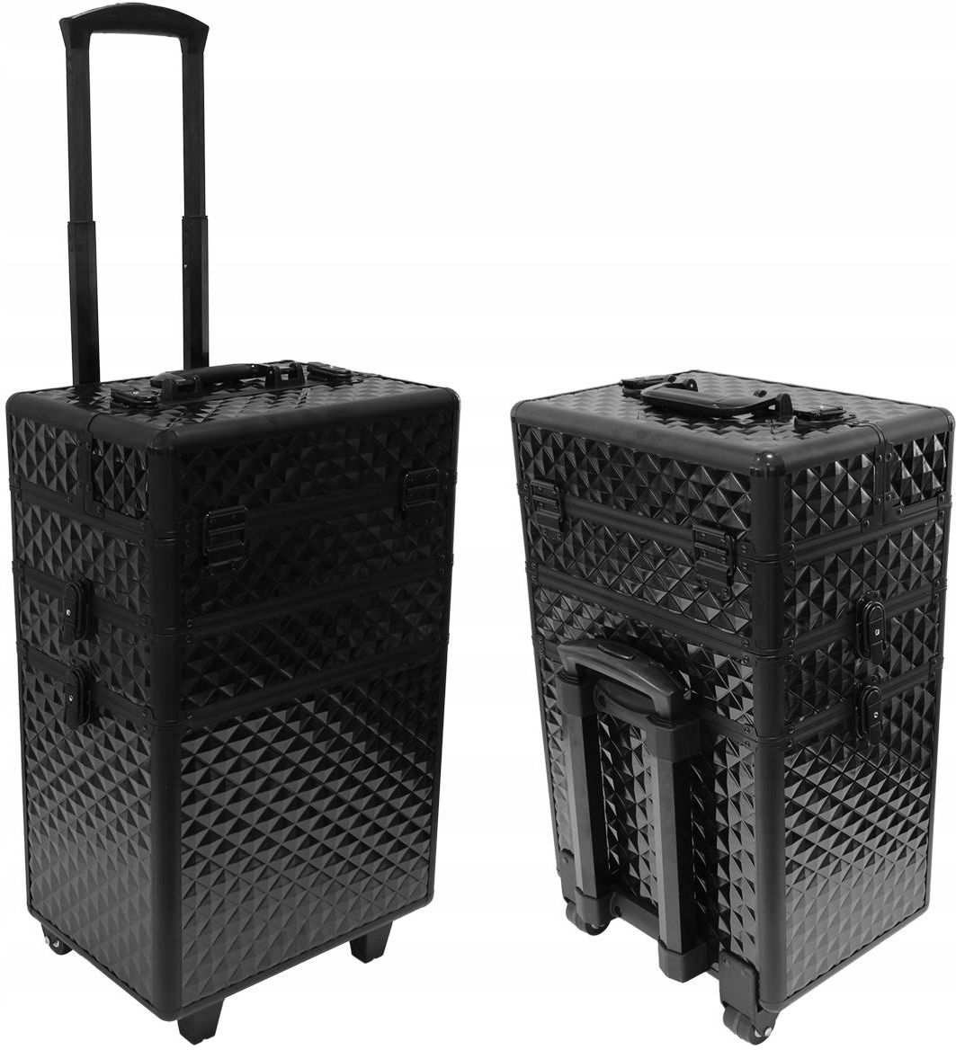 Poręczny kuferek służący do transportu i przechowywania kosmetyków lub innych drobnych rzeczy. Kuferek o solidnej konstrukcji ochroni twoje kosmetyki przed zniszczeniem znacznie lepiej niż torby i plecaki. Produkt został wyposażony w praktyczne i stabilne kółka. Profesjonalny i elegancki wygląd kuferka to idealna równowaga między stylem, a funkcjonalnością! Cechy produktu: Kuferek zaopatrzony jest w wygodną rączkę do przenoszenia oraz niezwykle praktyczny wysuwany uchwyt, co znacznie ułatwi zabranie Twoich kosmetyków lub biżuterii nawet w najdalszą podróż. Kufer został wyposażony w kółka z wytrzymałego tworzywa sztucznego, które umożliwiają jego wygodne przemieszczanie. Od wewnątrz, wyłożony jest miękkim materiałem chroniącym zawartość przed zarysowaniami i dodającym elegancji samemu kuferkowi. Powierzchnia kuferka została wykonana z aluminium o estetycznej fakturze. Posiada wzmocnione aluminiowe narożniki, dzięki czemu nie uszkodzi się tak łatwo w transporcie. Dzięki swojej wytrzymałości znacznie lepiej chroni składowane w nim kosmetyki itp. przed warunkami zewnętrznymi! Bardzo szybko i łatwo się rozkłada! Kuferek można częściowo rozmontować i używać osobno jako 2 przedmiotów! Dolna część na kółkach z wysuwaną rączką oraz mniejszy, kompaktowy kuferek podręczny! Jest lekki i przy tym niezwykle solidny dzięki zastosowaniu aluminium! Otwierana dwustronnie, pojemna komora główna i 4 rozsuwane przegrody umożliwiają trzymanie w kuferku mnóstwa rzeczy przy zachowaniu należytego porządku! Komora główna mieści lampy UV 36W oraz frezarki (modele do nabycia na naszych aukcjach!) Materiał: aluminium + tworzywo sztuczne + welur Kolor: czarny Wymiary: Wysokość: 61 cm Szerokość: 36 cm Grubość: 25 cm Wewnętrzne komory głównej (dolnej): 11 cm x 20 cm x 30 cm Wewnętrzne przegródek (w górnej komorze): 4 cm x 10 cm x 30 cm Kuferek idealnie nadaje się na prezent. Jest niezwykle praktyczny i na pewno przypadnie do gustu każdej kobiecie!