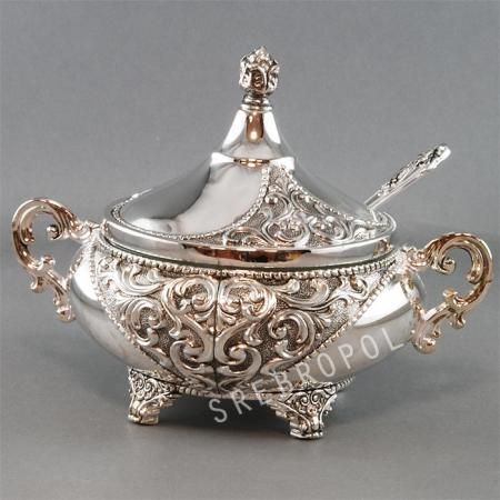 Zapraszam do kupna pięknej cukiernicy. Lśniącej srebrem ,bogato zdobione powierzchnie. Jest ciężka i solidna a łyżeczka jest przeurocza. Całość wykonana ze stopu cynku, platerowana srebrem. Doskonały pomysł na niedrogi prezent, bardzo efektowny. Może dla koleżanki z pracy, mamy, babci, cioci. A …