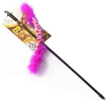 Wędka - zabawka dla kota na wiele godzin. Przeznaczona do wspólnej zabawy z kotem. Wskazana szczególnie dla kotów niewychodzących (z małą aktywnością). Gonitwa za poruszającym się obiektem jest instynktowna dla kota - wędka umożliwia bezpieczną zabawę z kotem. Wędka zakończona jest kolorowym ogonem z piórkami. Wędka Dingo Ogonek z piórkami Kolor: różowy