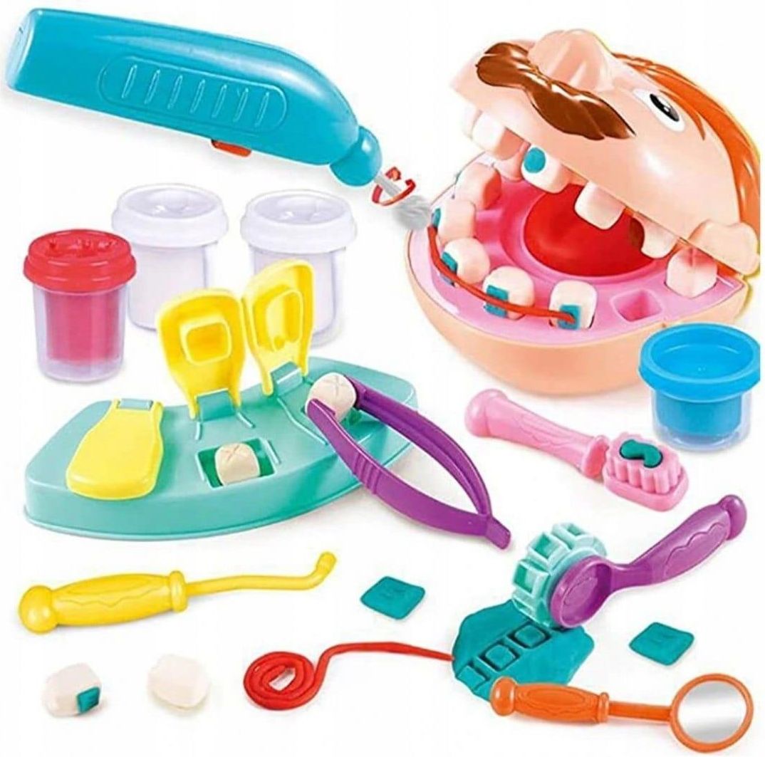 Zestaw Małego Dentysty Zestaw ciastoliny z zabawną głową pacjenta u stomatologa do zabawa w dentystę a przede wszystkim w borowanie ząbków, wstawianie implantów, zakładanie aparatu ortodontycznego. Dzieci oprócz fajnej plastycznej zabawy zapoznają się z pracą stomatologa pokonują wszystkie lęki …