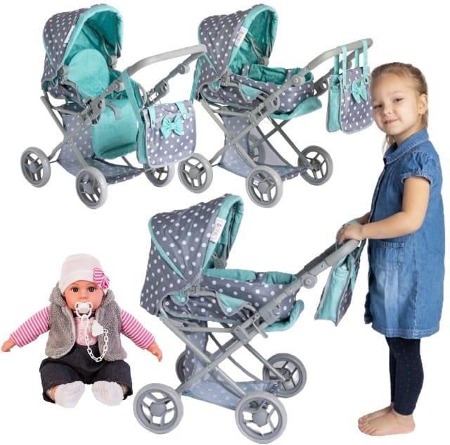 Doris wózek dla lalek kombinowany pościel + Bobas lalka mówi śpiewa 45cm (R) Żywiec