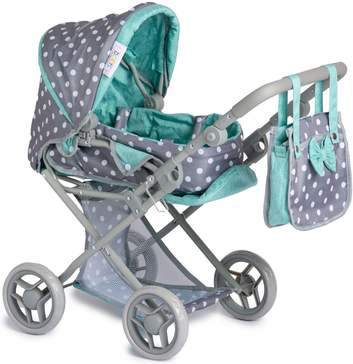 Doris Wózek Dla Lalek Kombinowany Pościel Torba Nosidło R Szaro-Zielony Kropki Żywiec