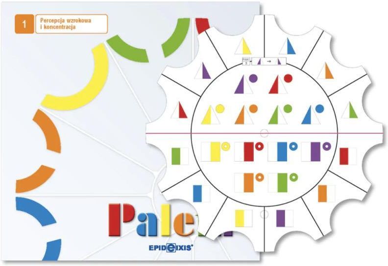 Paleta. Percepcja wzrokowa i koncentracja 1 Percepcja wzrokowa i koncentracja 1 to pierwszy zestaw kart kontrolnych w ramach Systemu Edukacji Paleta. Został opracowany z myślą o dzieciach w wieku przedszkolnym i wczesnoszkolnym, a także o specjalistach wspierających rozwój najmłodszych — nauczycielach, terapeutach, logopedach i rodzicach edukujących w domu. Rozwój percepcji wzrokowej i koncentracji uwagi Ćwiczenia zawarte w zestawie wspomagają rozwój kluczowych umiejętności poznawczych: percepcji wzrokowej, analizy i syntezy wzrokowej, koncentracji uwagi, logicznego myślenia. Dlaczego warto rozwijać percepcję wzrokową? Wzrok to główny analizator w procesach poznawczych — większość informacji o świecie odbieramy właśnie za jego pomocą. Jednak samo widzenie to za mało: ważna jest również umiejętność świadomego patrzenia, rozróżniania bodźców oraz ich interpretacji. Tego właśnie uczą zadania z zestawu – wspierają one rozwój uważności, spostrzegawczości i świadomego odbioru wizualnego. Stymulacja wzrokowa przez zabawę Systematyczna stymulacja percepcji wzrokowej już od najmłodszych lat znacząco wpływa na łatwość uczenia się i ogólny rozwój dziecka. Ćwiczenia zawarte w tarczach Paleta pomagają dzieciom w skupieniu się, lepszym wykonywaniu zadań oraz efektywnym przyswajaniu nowych informacji. Materiały wspierające nauczycieli i terapeutów System Edukacji Paleta jest cenionym narzędziem wspierającym pracę specjalistów. Zestaw „Percepcja wzrokowa i koncentracja 1” idealnie uzupełnia dotychczasową ofertę materiałów edukacyjnych i terapeutycznych w tym systemie. Może być wykorzystywany zarówno w pracy indywidualnej, jak i grupowej — w przedszkolach, szkołach i gabinetach terapeutycznych. Uwaga: Do korzystania z tarcz niezbędny jest Zestaw Kontrolny Paleta. Jeden Zestaw Kontrolny Paleta pozwala na pracę za wszystkimi produktami tego Systemu Edukacji. Pozostałe zestawy w systemie Paleta W ofercie dostępne są również inne zestawy kart kontrolnych wspierające rozwój dzieci: Percepcja wzrokowa i koncentracja 2 Pierwsze zabawy z sylabami 1 i 2 – nauka czytania metodą sylabową WPK – przygotowanie do nauki w szkole Matematyczne tarcze M1–M5 – rozwój kompetencji matematycznych