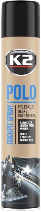 K2 POLO COCKPIT to spray do pielęgnacji i konserwacji deski rozdzielczej. Zawiera specjalne nanocząsteczki, dzięki którym w łatwy i szybki sposób zabezpieczy cały kokpit, przywróci głęboką barwę oraz wyrazistą fakturę czyszczonych elementów.