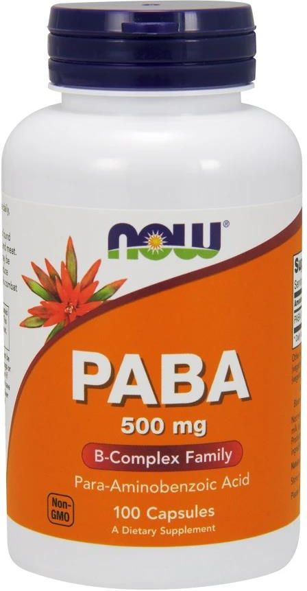 Now Foods Paba 500mg 100 cap Kwas P-amino-benzoesowy (PABA) jest związkiem organicznym, który jest również znany jako kwas 4-aminobenzoesowy i kwas para-aminobenzoesowy. PABA służy do syntezy kwasu foliowego, który jest niezbędnym składnikiem odżywczym ludzkiego organizmu. Stosowanie suplemetu Now …