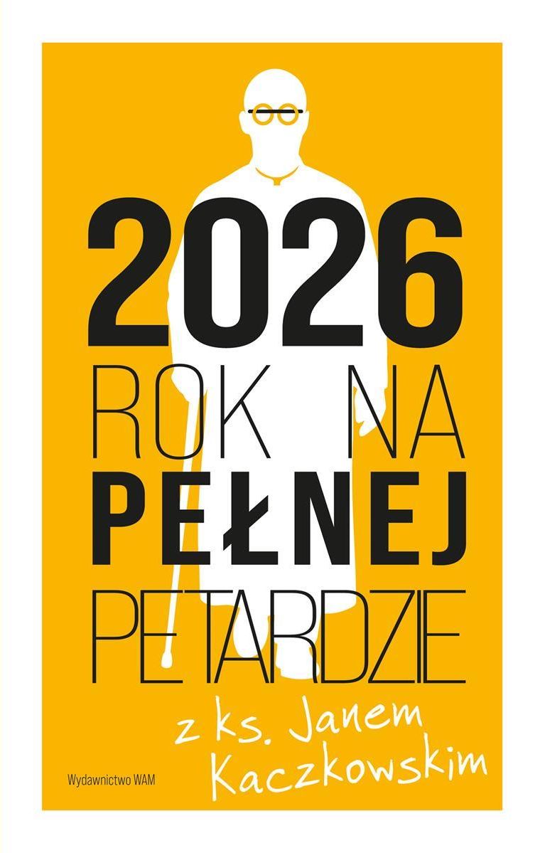 Rok na pełnej petardzie Żyć na 100% – z odwagą, czułością i wiarą. Kalendarz, który inspiruje. Ksiądz Jan Kaczkowski był człowiekiem, który nie tylko mówił o życiu „na pełnej petardzie”, ale przede wszystkim tak żył. Jego słowa wciąż poruszają serca i przypominają o tym, co w życiu naprawdę ważne – bliskość, relacje, wrażliwość, miłość, odwaga. Kalendarz 2026. Rok na pełnej petardzie z ks. Janem Kaczkowskim to wyjątkowy organizer tygodniowy, który pomoże ci zatrzymać się w biegu i spojrzeć z nadzieją na codzienność. Znajdziesz w nim: cytaty ks. Jana na każdy tydzień roku – pełne humoru, mądrości i odwagi do życia mimo wyzwań, refleksyjne teksty – o relacjach, rodzinie, sumieniu, emocjach, uważności i nie tylko, przestrzeń na osobiste notatki, fotografie księdza Jana, które przypominają, że świętość może mieć również uśmiechniętą twarz. To nie tylko kalendarz. To duchowy przewodnik na 2026 rok. Dla tych, którzy chcą żyć odważnie, kochać prawdziwie i nie bać się tego, co przynosi życie. Nie ma słabości, której nie umiem przekuć w sukces i żyć na pełnej petardzie. Johnny Kupując kalendarz, wspierasz działalność Fundacji im. księdza Jana Kaczkowskiego. Rodzaj towaru: kalendarz Podtytuł: Z ks. Janem Kaczkowskim Autor: Wydanie: Rok wydania: Stron: 176 Data ukazania na rynku: 2025-10-07 Jednostka miary: egz. Język publikacji: polski W kalendarzu znajdziesz cytaty ks. Jana na każdy tydzień roku – pełne humoru, mądrości i odwagi do życia mimo wyzwań, refleksyjne teksty – o relacjach, rodzinie, sumieniu, emocjach, uważności i nie tylko, przestrzeń na osobiste notatki, fotografie księdza Jana, które przypominają, że świętość może mieć również uśmiechniętą twarz.