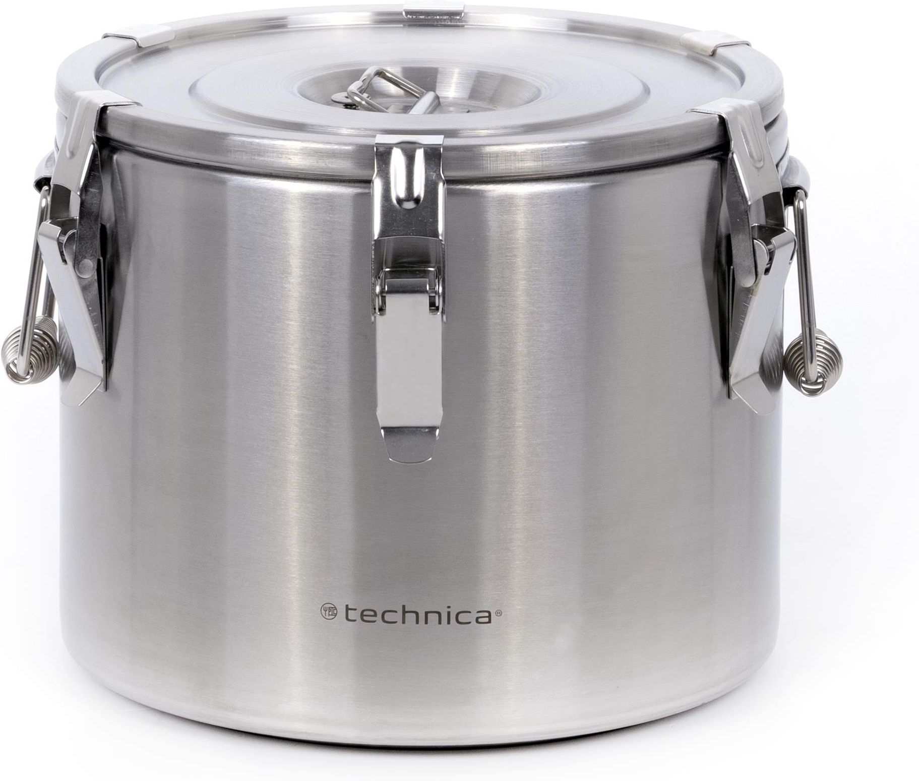 TERMOS GASTRONOMICZNY 15 L DO TRANSPORTU ŻYWNOŚCI STAL NIERDZEWNA TECHNICA KOD PRODUKTU: 573315 Termos marki TECHNICA z linii Gold Line to niezawodne rozwiązanie do transportu gorących potraw i napojów. Dzięki specjalistycznej konstrukcji, termos utrzymuje ciepło przez długi czas, co czyni go idealnym wyborem dla branży cateringowej oraz dostawców posiłków. Najważniejsze cechy Pojemność: 15 l Wysokość: 275 mm Średnica: 330 mm Wymiary wewnętrzne: 300x230 mm (średnica x wysokość) Trwałość i materiały Wewnętrzna ścianka ze stali AISI 443, wyróżniająca się wysoką odpornością na korozję Zewnętrzna ścianka ze stali AISI 201 Praktyczne funkcje Brak kranu spustowego Podwójne ścianki z pianką izolacyjną, które utrzymują ciepło do 8 godzin Wentyl odpowietrzający wyrównujący ciśnienie Szczelna pokrywa z silikonową uszczelką, zapobiegająca przeciekom 6 mocnych zatrzasków zapewniających pewne zamknięcie Ergonomiczne uchwyty dla łatwego i bezpiecznego przenoszenia Uchwyt pokrywy do jej unoszenia (nie należy używać do podnoszenia całego termosu) Termos TECHNICA to niezawodny sprzęt, szczególnie polecany dla firm zajmujących się cateringiem i dostawą posiłków. To wsparcie wszędzie tam, gdzie ważne jest utrzymanie odpowiedniej temperatury serwowanych potraw. Zdjęcie poglądowe. Produkt rzeczywisty może się nieznacznie różnić od przedstawionego. Dane techniczne Marka: TECHNICA Kod produktu: 573315 Seria: Gold Line Wysokość: 275 mm Średnica: 330 mm Pojemność: 15 l Materiał: stal nierdzewna Kolor: inox Kran spustowy: nie